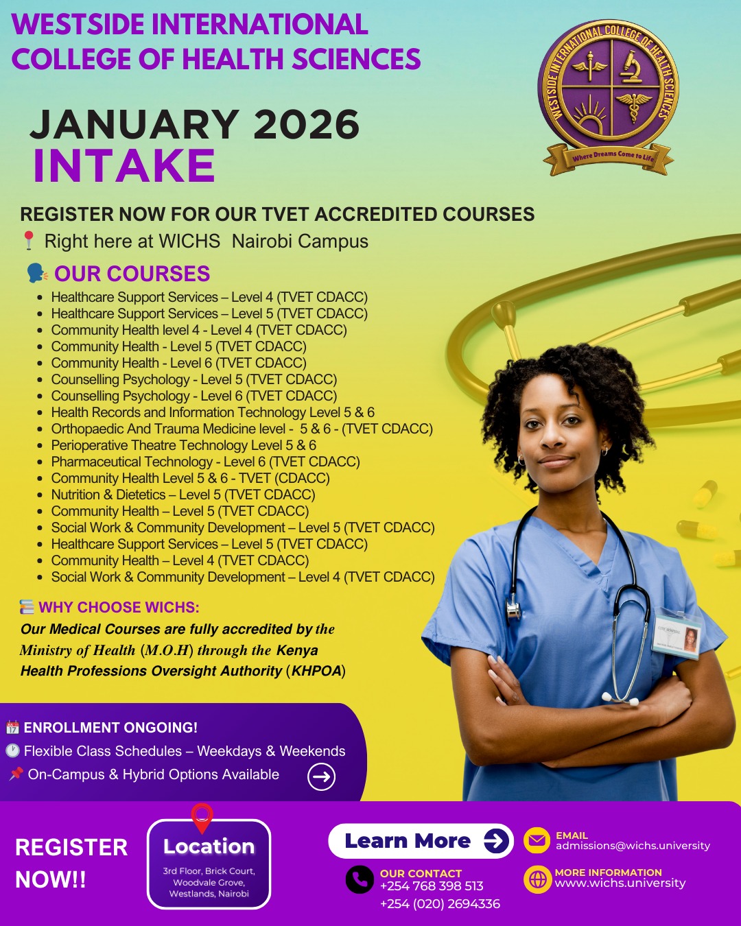 At Westside International College of Health Sciences (WICHS), we are dedicated to shaping the future of healthcare through world-class education, hands-on training, and cutting-edge research. Our mission is to produce skilled, ethical, and compassionate professionals who will lead innovations in healthcare and management. Join us in our commitment to excellence and be part of the next generation of healthcare leaders.